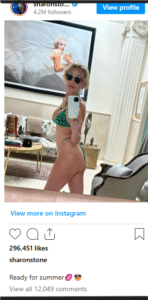 Even after decades in the business, Stone hasn’t shied away from daring photo shoots. In 2022, she nearly broke Instagram with a playful poolside snapshot — topless under a towel and rocking a green leopard bikini bottom. She captioned the shot: “Gratefully Imperfect on a Perfect Day.” The post drew nearly 300,000 likes and thousands of comments, with fans applauding her confidence.