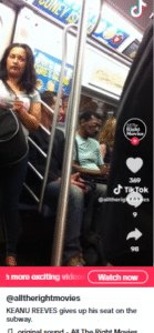 Keanu’s down-to-earth nature doesn’t stop when the cameras are off. Fans have spotted him riding the subway in New York City, giving up his seat for strangers. He’s been photographed sitting alone in a park, eating a sandwich like any regular person. Once, at his own wrap party, he waited in line for food instead of cutting ahead, refusing to accept special treatment.