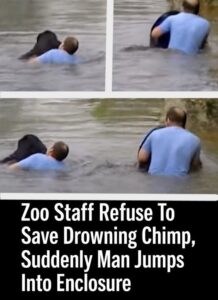 Among them was Rick Swope, a 33-year-old truck driver visiting the zoo with his wife and three kids. When he saw the chimp fighting to stay afloat — and no staff rushing in to help — Rick’s instincts took over.