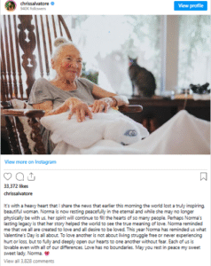 He later announced her passing on Instagram, where thousands of followers had been following their journey. “She taught me what it means to love selflessly,” he wrote. “She showed me that kindness can heal even the deepest loneliness.”