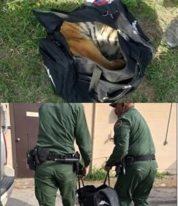 Approaching carefully, the agents unzipped the bag — and froze. Inside lay a tiny tiger cub, barely three or four months old, shivering and gasping for air. Its striped fur was damp and dirty, its small chest rising unevenly. The agents quickly realized they weren’t dealing with drugs or weapons, but something just as illegal — and far more innocent.