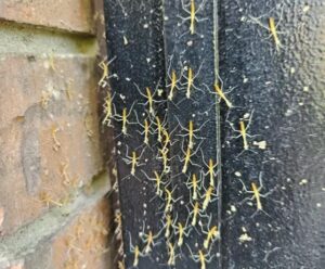 As I stood there that morning, watching dozens of tiny mantises venture into the world for the first time, I felt an overwhelming sense of wonder. Some crawled up the brick wall, others disappeared into nearby flower beds and patches of grass. Their delicate bodies blended perfectly with the leaves and stems, their camouflage already serving them well. It was as if the earth itself had exhaled, releasing these small, green miracles into the morning light.