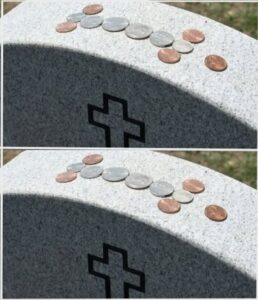 If you’ve ever walked through a peaceful cemetery and noticed coins placed carefully atop a gravestone, you may have wondered what they mean. They’re not random tokens or forgotten change — each coin carries deep symbolism, representing love, respect, and remembrance for those who served.