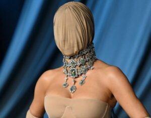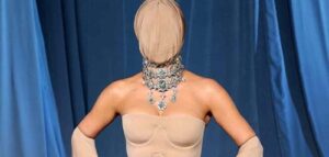 Dressed in a nude-toned Maison Margiela gown, Kim completed her look with a full-face, sock-like mask — a balaclava-style covering that left almost none of her facial features visible. The result was both strange and mesmerizing, turning her red-carpet walk into a surreal performance. It immediately drew comparisons to her 2021 Balenciaga appearance, when she arrived entirely veiled in black fabric from head to toe, a look that made headlines worldwide.