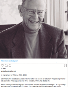 Hollywood has bid farewell to one of its enduring actors of comedy, character roles and late-blooming stardom. Ed Williams passed away on October 2, 2025, in Los Angeles at the age of 98. People.com+2Wikipedia+2 His death was confirmed by his granddaughter, Stephanie Williams, to The Hollywood Reporter. People.com+1 With his passing, one of the last continuing links to the original cast of the beloved spoof series Police Squad! and the feature films of The Naked Gun: From the Files of Police Squad! has faded.