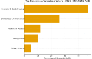 Nearly half of those surveyed (47 %) said the economy and cost of living were their number-one concerns. Prices for essentials — groceries, gas, housing — have risen steadily, straining working families and retirees alike.