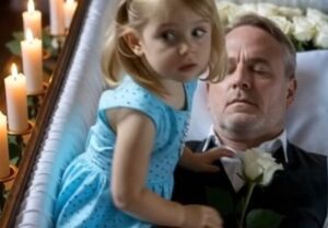She was only eight, but in that moment, she looked older than all of us — ancient, almost. Her hand rested lightly on the coffin’s polished surface, her small fingers tracing the wood grain in slow, deliberate lines, as though she might find our father somewhere beneath it.