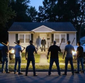 Outside, engines roared. Trucks rolled onto his lawn, chewing up the grass. Headlights lit the porch like a stage. Seven men stepped out. Big men. Confident men. Men who had never been told no.