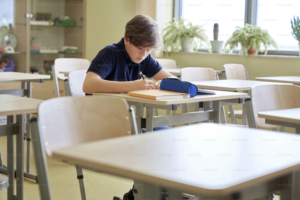 His shoulders were drawn inward, his eyes locked on the corner of his textbook as if concentrating hard enough might make him invisible. His chest tightened with every breath. Tears burned behind his eyes as laughter bubbled up around him.