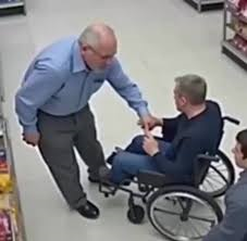 Standing back up, his tone became firm. “Sir, this customer clearly requires his wheelchair. Your request is inappropriate.”