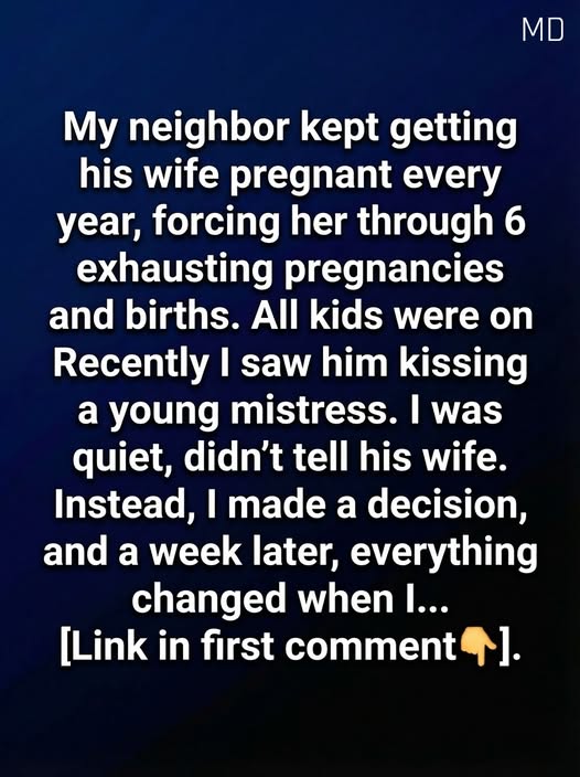 I had watched their life from across the fence for years, the rhythm of it as predictable as the sunrise. Every year, another baby. Every year, she grew quieter, more tired, her smile fading just a little more. She never complained, never raised her voice, just carried on—holding children on her hip, hanging laundry in the early morning, moving through her days like someone who had forgotten what rest felt like. People in the neighborhood called her strong. I thought she looked exhausted. Still, I stayed out of it. It wasn’t my place, I told myself.