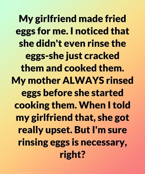 To him, it was nothing. A passing memory. In his childhood kitchen, rinsing eggs had simply been the proper way. He wasn’t questioning Mira. He was remembering.