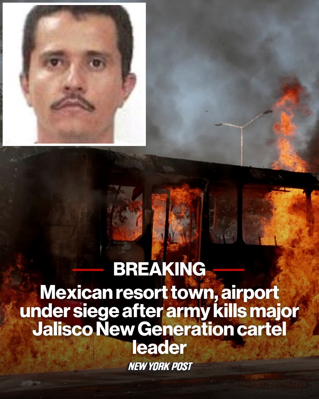 A major Mexican resort town was under siege on Sunday as drug cartels lashed out after the leader of the brutal Jalisco New Generation Cartel was killed in a military raid, authorities said.